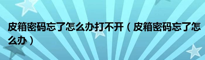 皮箱密码忘了怎么办打不开(皮箱密码忘了怎么办)