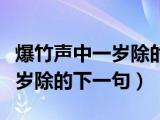 大家好,小乐来为大家解答以下的问题,爆竹声中一岁除的下一句是什么,爆竹声中一岁除的下一句很多人还不知道,现在让我们一起来看看吧!1 浏览全文>>