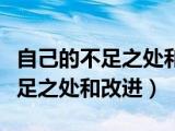 大家好,小乐来为大家解答以下的问题,自己的不足之处和改进自己的缺点,自己的不足之处和改进很多人还不知道,现在让我们一起来看看吧!问 浏览全文>>