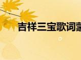大家好,小乐来为大家解答以下的问题,吉祥三宝歌词蒙古语,吉祥三宝歌词很多人还不知道,现在让我们一起来看看吧!1、《吉祥三宝》由蒙古 浏览全文>>