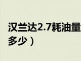 大家好,小乐来为大家解答以下的问题,汉兰达2 7耗油量是多少,2 7汉兰达实际油耗多少很多人还不知道,现在让我们一起来看看吧!2 7L的汉兰 浏览全文>>
