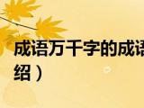 大家好,小乐来为大家解答以下的问题,成语万千字的成语有哪些,带万千字的成语介绍很多人还不知道,现在让我们一起来看看吧!1、万紫千红 浏览全文>>