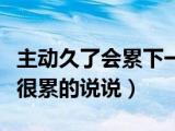 大家好,小乐来为大家解答以下的问题,主动久了会累下一句是怎么说的,主动久了会很累的说说很多人还不知道,现在让我们一起来看看吧!1、 浏览全文>>