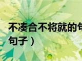 大家好,小乐来为大家解答以下的问题,不凑合不将就的句子怎么说,不凑合不将就的句子很多人还不知道,现在让我们一起来看看吧!1、我依然 浏览全文>>