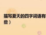 大家好,小乐来为大家解答以下的问题,描写夏天的四字词语有哪些20个,描写夏天的四字词语有哪些很多人还不知道,现在让我们一起来看看吧! 浏览全文>>