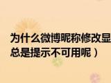 大家好,小乐来为大家解答以下的问题,为什么微博昵称修改显示不可用,为什么新浪微博修改昵称总是提示不可用呢很多人还不知道,现在让我们 浏览全文>>