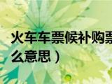 大家好,小乐来为大家解答以下的问题,火车车票候补购票是什么意思,候补购票是什么意思很多人还不知道,现在让我们一起来看看吧!1、候补 浏览全文>>