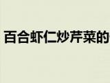 大家好,小乐来为大家解答以下的问题,百合虾仁炒芹菜的做法,虾仁炒芹菜的做法很多人还不知道,现在让我们一起来看看吧!1、用料:虾仁适 浏览全文>>