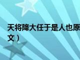 大家好,小乐来为大家解答以下的问题,天将降大任于是人也原文句子拼音,天将降大任于是人也原文很多人还不知道,现在让我们一起来看看吧! 浏览全文>>
