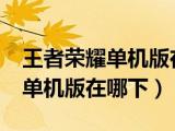 大家好,小乐来为大家解答以下的问题,王者荣耀单机版在哪下载?,王者荣耀真正的单机版在哪下很多人还不知道,现在让我们一起来看看吧!1、 浏览全文>>
