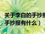 大家好,小乐来为大家解答以下的问题,关于李白的手抄报有什么背景好,关于李白的手抄报有什么很多人还不知道,现在让我们一起来看看吧!1 浏览全文>>
