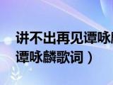 大家好,小乐来为大家解答以下的问题,讲不出再见谭咏麟歌词 普通话,讲不出再见谭咏麟歌词很多人还不知道,现在让我们一起来看看吧!1、 浏览全文>>
