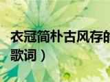 大家好,小乐来为大家解答以下的问题,衣冠简朴古风存的上一句是,衣冠简朴古风存歌词很多人还不知道,现在让我们一起来看看吧!1、衣冠简 浏览全文>>