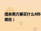 大家好,小乐来为大家解答以下的问题,提亲男方要买什么8样礼,提亲男方一般需要准备的礼物有哪些很多人还不知道,现在让我们一起来看看吧 浏览全文>>