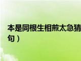 大家好,小乐来为大家解答以下的问题,本是同根生相煎太急猜生肖,本是同根生何必相煎太急下一句很多人还不知道,现在让我们一起来看看吧! 浏览全文>>