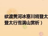 大家好,小乐来为大家解答以下的问题,欲渡黄河冰塞川将登太行雪满山怎么读,欲渡黄河冰塞川将登太行雪满山赏析很多人还不知道,现在让我们 浏览全文>>