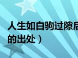 大家好,小乐来为大家解答以下的问题,人生如白驹过隙后面要写什么,人如白驹过隙的出处很多人还不知道,现在让我们一起来看看吧!1、“人 浏览全文>>