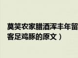 大家好,小乐来为大家解答以下的问题,莫笑农家腊酒浑丰年留客足鸡豚鸡,莫笑农家腊酒浑丰年留客足鸡豚的原文很多人还不知道,现在让我们一 浏览全文>>