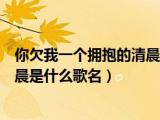 大家好,小乐来为大家解答以下的问题,你欠我一个拥抱的清晨是什么歌名字,你欠我一个拥抱的清晨是什么歌名很多人还不知道,现在让我们一起 浏览全文>>