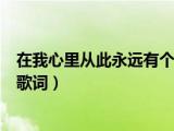 大家好,小乐来为大家解答以下的问题,在我心里从此永远有个你歌曲,在我心里从此永远有个你的歌词很多人还不知道,现在让我们一起来看看吧 浏览全文>>