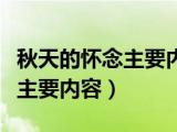 大家好,小乐来为大家解答以下的问题,秋天的怀念主要内容和主题思想,秋天的怀念主要内容很多人还不知道,现在让我们一起来看看吧!1、秋 浏览全文>>