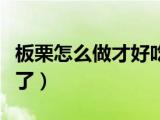 大家好,小乐来为大家解答以下的问题,板栗怎么做才好吃了视频,板栗怎么做才好吃了很多人还不知道,现在让我们一起来看看吧!1、食材:栗 浏览全文>>
