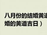 大家好,小乐来为大家解答以下的问题,八月份的结婚黄道吉日有哪些,八月份适合结婚的黄道吉日很多人还不知道,现在让我们一起来看看吧!1 浏览全文>>