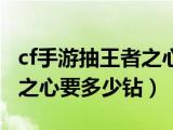大家好,小乐来为大家解答以下的问题,cf手游抽王者之心要多少钻石,cf手游抽王者之心要多少钻很多人还不知道,现在让我们一起来看看吧!1 浏览全文>>