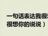 大家好,小乐来为大家解答以下的问题,一句话表达我很想你 潜台词,一句话表达我很想你的说说很多人还不知道,现在让我们一起来看看吧!1 浏览全文>>