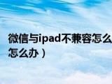 大家好,小乐来为大家解答以下的问题,微信与ipad不兼容怎么办如何下载微信,微信与ipad不兼容怎么办很多人还不知道,现在让我们一起来看看 浏览全文>>