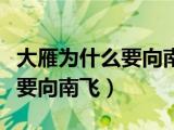大家好,小乐来为大家解答以下的问题,大雁为什么要向南飞脑筋急转弯,大雁为什么要向南飞很多人还不知道,现在让我们一起来看看吧!1、大 浏览全文>>