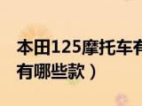大家好,小乐来为大家解答以下的问题,本田125摩托车有哪些款式,本田125摩托车有哪些款很多人还不知道,现在让我们一起来看看吧!1、本田1 浏览全文>>