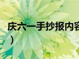 大家好,小乐来为大家解答以下的问题,庆六一手抄报内容写什么,庆六一手抄报内容很多人还不知道,现在让我们一起来看看吧!1、“六一”国 浏览全文>>