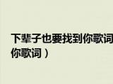 大家好,小乐来为大家解答以下的问题,下辈子也要找到你歌词粤语表达什么意思,下辈子也要找到你歌词很多人还不知道,现在让我们一起来看看 浏览全文>>