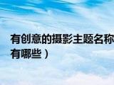大家好,小乐来为大家解答以下的问题,有创意的摄影主题名称有哪些好听,有创意的摄影主题名称有哪些很多人还不知道,现在让我们一起来看看 浏览全文>>