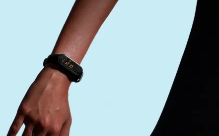 屏幕上有孔的小米Mi Band 5的图像 用于相机