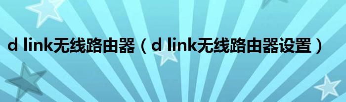 d link无线路由器(d link无线路由器设置)