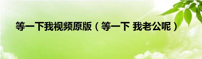 等一下我视频原版,等一下 我老公呢这个很多人还不知道,小飞来为大家解答以上的问题。现在让我们一起来看看吧!