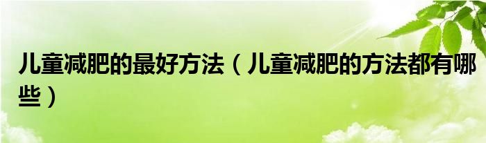 儿童减肥的最好方法(儿童减肥的方法都有哪些)