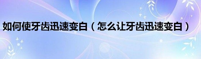 如何使牙齿迅速变白(怎么让牙齿迅速变白)