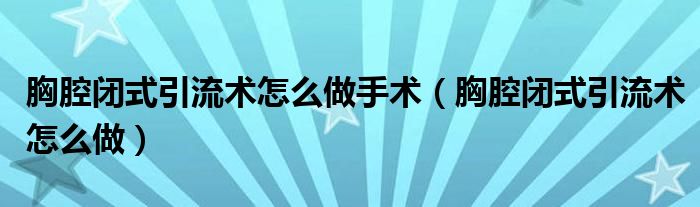 胸腔闭式引流术怎么做手术(胸腔闭式引流术怎么做)