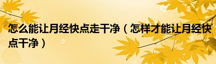 怎么能让月经快点走干净(怎样才能让月经快点干净)