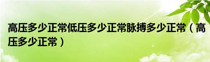 高压多少正常低压多少正常脉搏多少正常(高压多少正常)