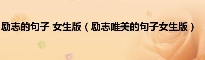 大家好,小乐来为大家解答以下的问题,励志的句子 女生版,励志唯美的句子女生版很多人还不知道,现在让我们一起来看看吧!