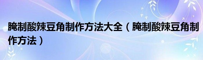 腌制酸辣豆角制作方法大全(腌制酸辣豆角制作方法)