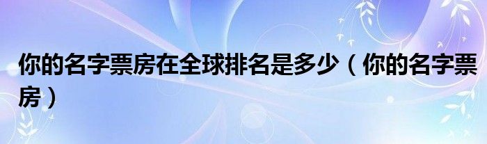 大家好,小乐来为大家解答以下的问题,你的名字票房在全球排名是多少,你的名字票房很多人还不知道,现在让我们一起来看看吧!