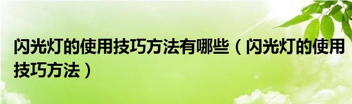 闪光灯的使用技巧方法有哪些(闪光灯的使用技巧方法)