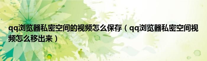 qq浏览器私密空间的视频怎么保存(qq浏览器私密空间视频怎么移出来)