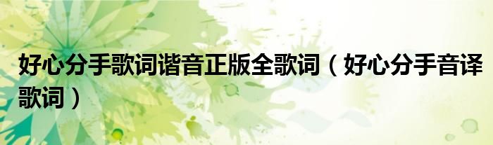 好心分手歌词谐音正版全歌词(好心分手音译歌词)