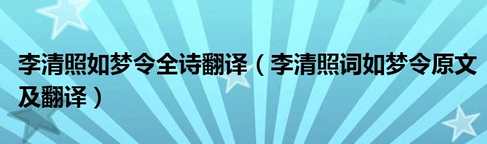 李清照如梦令全诗翻译(李清照词如梦令原文及翻译)
